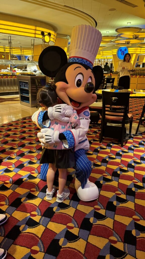 ミッキーがテーブルまで来てくれて、一緒に写真を撮れる特別なレストランです。