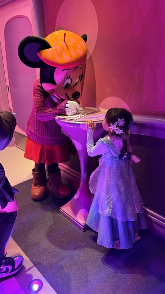 エントランスでミッキーたちに出会うと、テンションは一気に最高潮。